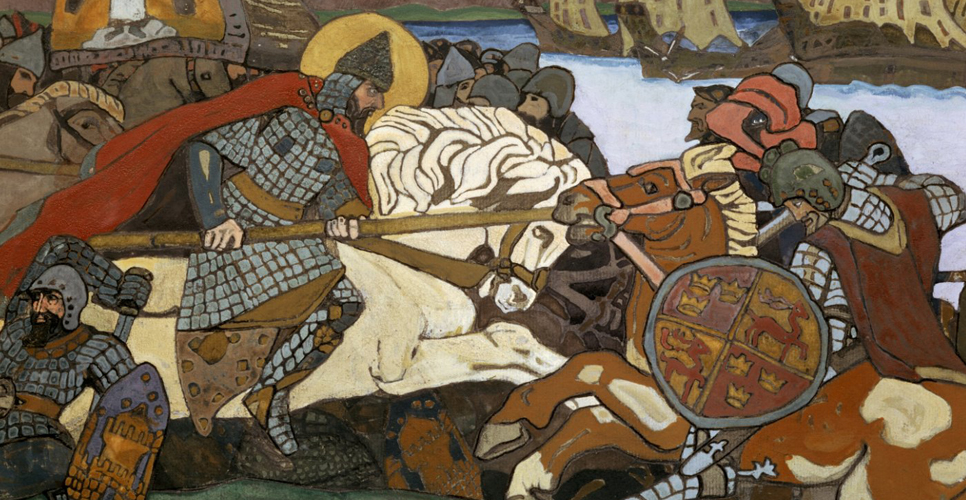 Первый подвиг, за который Александр Ярославович и получил своё прозвище - легендарное Невское побоище. Дружина Невского разбила шведов в устье реки Ижоры. Князь лично участвовал в битве и "самому королю възложи печать на лице острымь своимь копиемь", то есть нанёс копьём тяжкие телесные шведскому предводителю Биргеру. Считается, что победа Невского предотвратила потерю Русью берегов Финского залива и остановила шведскую агрессию на новгородско-полоцкие земли. Стоит признать, что битва не отличалась масштабностью, скорее это была спецоперация, в которой дружина князя захватила стратегическое и тактическое преимущество, неожиданно напав на шведов.